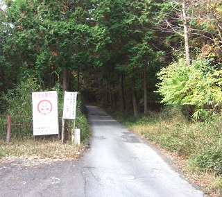 林道の入口から「不法投棄禁止・警告」の看板が立てられており短い林道に何カ所も警告看板が立てられていた